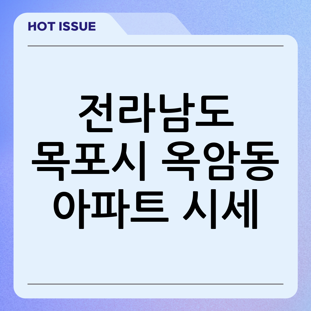 Q: 옥암동 아파트의 미래 가치는 어떻게 전망되나요? A: 목포시의 개발 계획에 따라 꾸준히 상승할 것으로 예상됩니다.